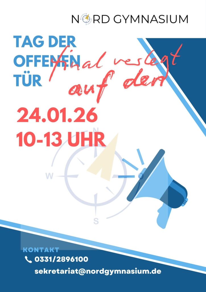 Am Samstag, den 10. Januar 2026, öffnet das Nord Gymnasium von 10:00 bis 13:00 Uhr seine Türen für alle interessierten Schülerinnen und Schüler, Eltern und Freunde unserer Schule.