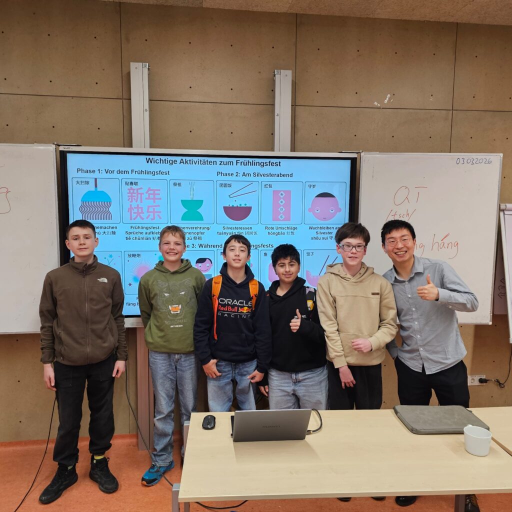 In der heutigen China Tech AG hat sich alles um das chinesische Neujahr gedreht. Zu Gast hatten wir heute Qi Zhenghang von der Humboldt Universität zu Berlin, der uns einen Einblick in alle Traditionen und Rituale rund um das chinesische Neujahr gegeben hat. Ganz nebenbei wurden so viele neue chinesische Vokabeln gelernt.